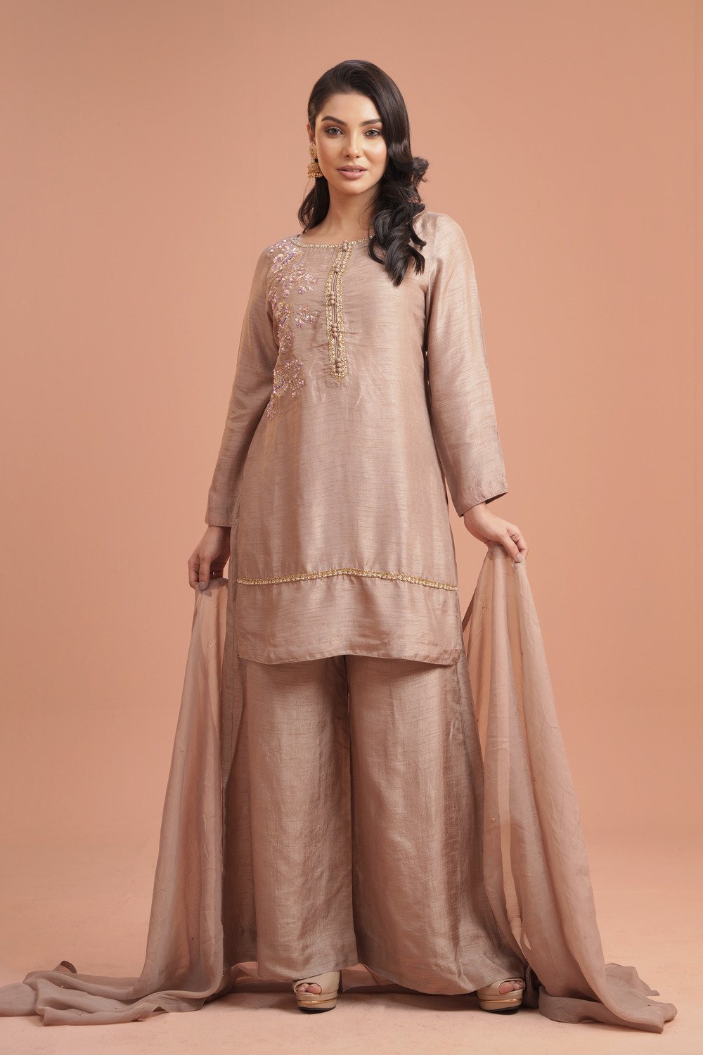 Kameez-Dola silk, Pant-Dola Silk , and Dupatta- Organza